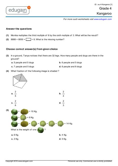 Math kangaroo practice sheets grade 4 william hopper's addition. Kangaroo worksheets maths soalan ell contoh esol esl